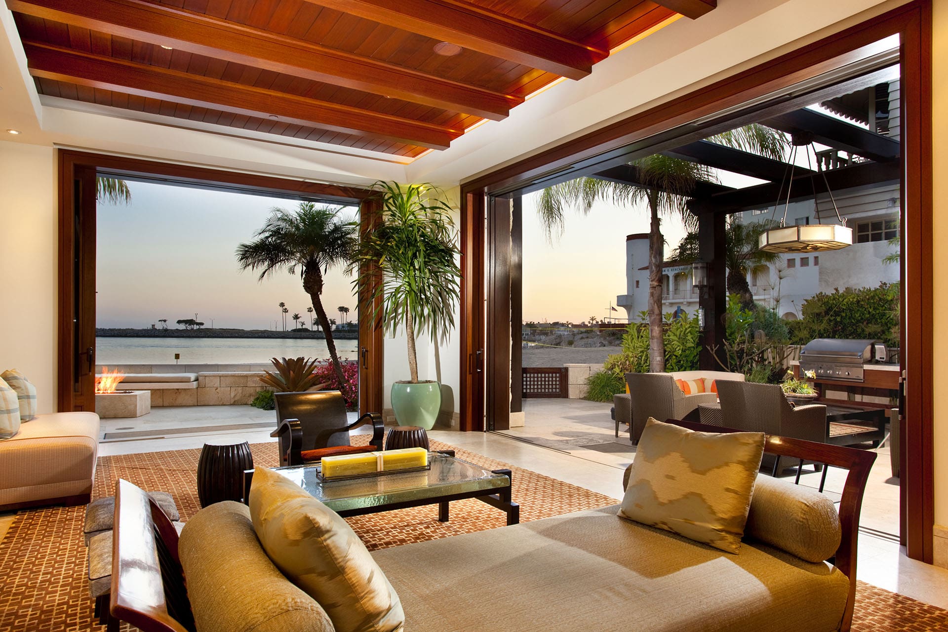 Live in this magnificent estate, right on the most scenic beach in the Newport Harbor……a true “toes in the sand” location near the Newport Harbor entrance on the Corona Del Mar side You’ll enjoy dynamic views here, and you will delight in the abundance of elegant features found throughout this 5700 (approx.) square foot living space, including Honduran mahogany windows, doors, ceilings, and millwork, leathered travertine and Brazilian cherry wood plank floors, Caesar stone counter tops, curved glass stair railing and much, much more. Live the Indonesian resort lifestyle in China Cove. At the center of the home, you’ll find a breathtaking open atrium adding unparalleled tranquility and beauty to the living space. There are a total of 4 bedrooms, 4 bathrooms, plus a powder room. 2 offices, a secondary family room on the top level and a cozy rooftop deck with a fireplace. Boasting a caterer’s kitchen, which includes a Wolf six-burner cooktop and two ovens, 3 additional ovens, a sub-zero refrigerator/freezer plus 2 additional refrigeration drawers, a warming drawer and two dishwashers. This large home features a great room which includes a living room area, media room, and morning (breakfast) room. Completely refreshed to as new condition.